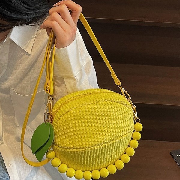 Foreign Trade 2025 New Style Personalized Cute Lemon Bag Trendy Crossbody Straw Small Round Bag Chain Girl Shoulder Bag