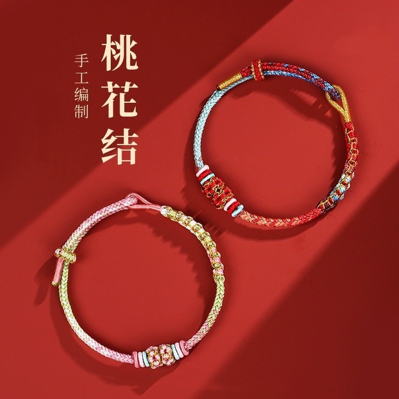 Gradient peach blossom bracelet woven bracelet female hand-woven Peach Blossom Knot bracelet birth year jewelry couple jewelry