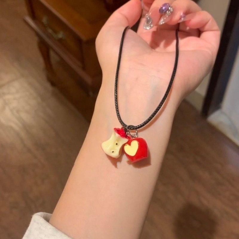 Late Night Platycodon "Red Apple Paradise" Cute Glazed Love Apple Necklace Red Girl Pendant Necklace
