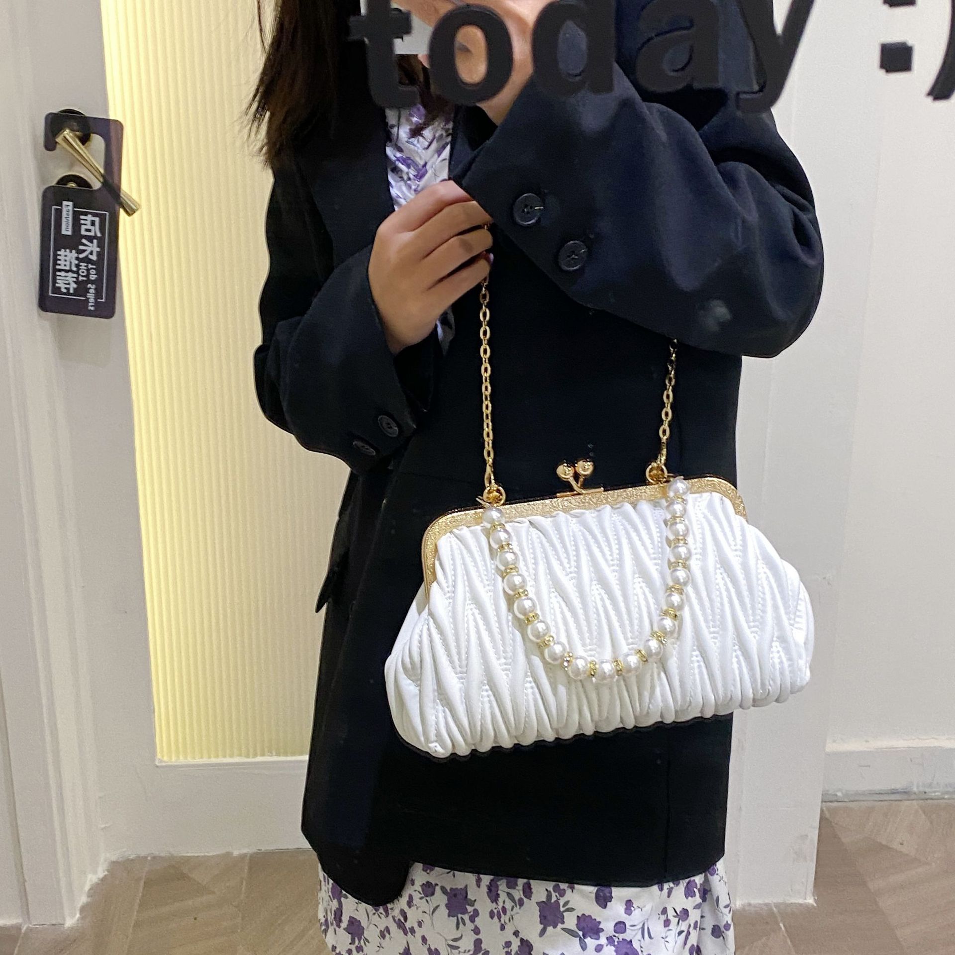 Bags Women's Dinner Pearl Portable Pleated Clip Shell Bag 2025 New Chain Shoulder Embroidery Crossbody Bag
