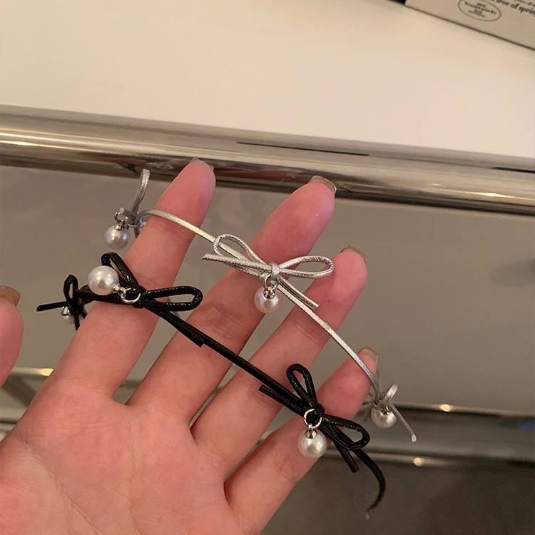 Sweet Cool Girl Bow Pearl Necklace Women High-grade silver Leather Hot Girl Collar