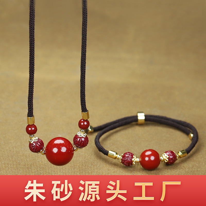 Wholesale Natural Cinnabar Handmade Braided Rope Bracelet Dzi Beads High Content Purple Gold Sand Transfer Beads Bracelet Necklace for Women