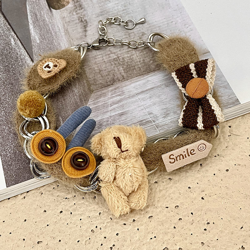 Autumn and Winter plush bear necklace South Korea cute three-dimensional sweater chain Women's fashionable hip hop long pendant clavicle chain necklace