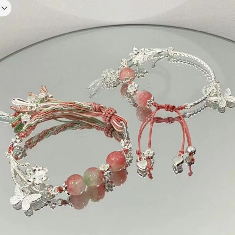 Spring Pink Lotus Pond Butterfly Cherry Blossom Bracelet Sweet and Exquisite Design Bracelet Chinese Style High Color Value Student Edition