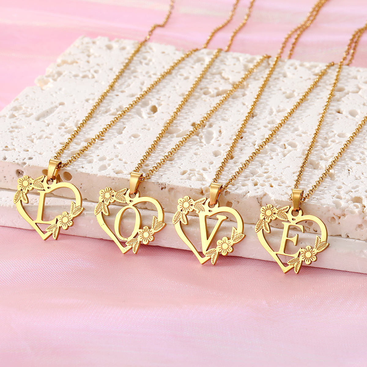 Cross-Border New Fashion 26-Letter Heart Flower Cut Out Necklace Women's Creative Leaf Gold Heart-Shaped Pendant Necklace