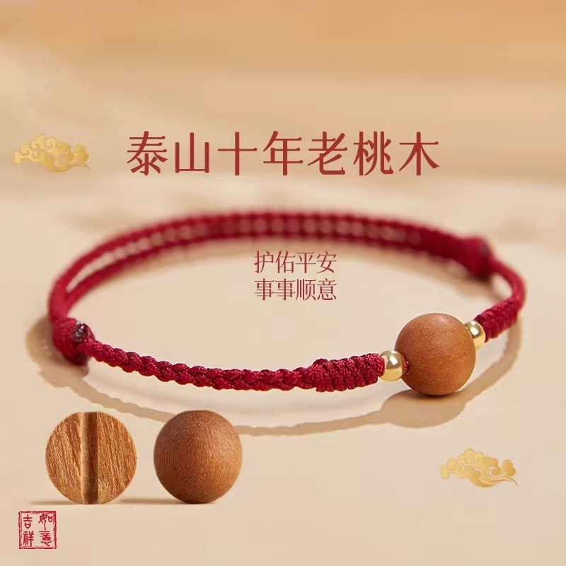 Wooden Bracelet Peach Wood Red Rope Braided Bracelet for Girls Year of the Snake Animal Year Red Bracelet Transfer Beads Wooden Bracelet