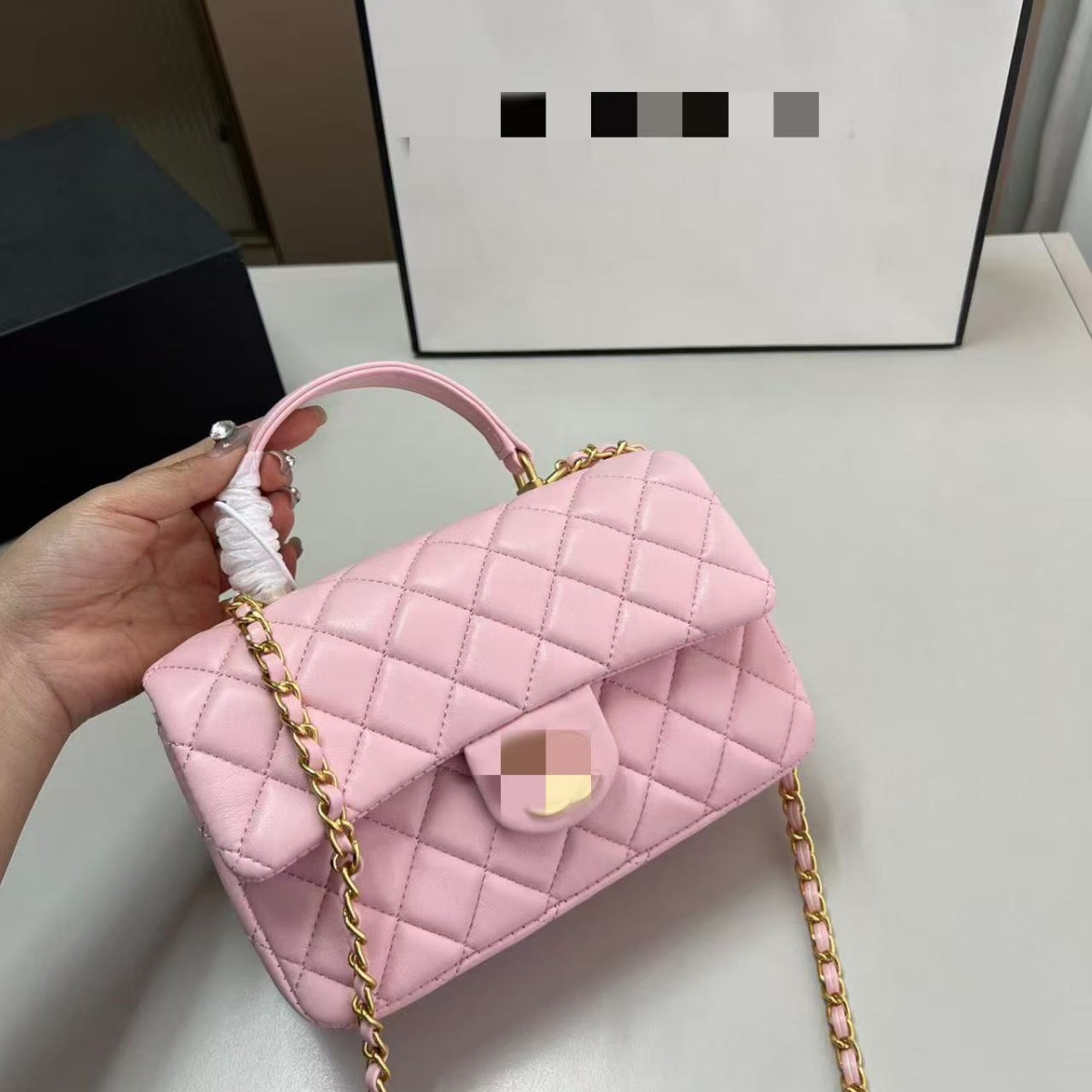 Summer New Style Bag for Women, Fashionable Genuine Leather Hand-Held Chain Bag for Women, Small Gold Ball Crossbody Bag, Small Fragrant Rhombus Shoulder Bag