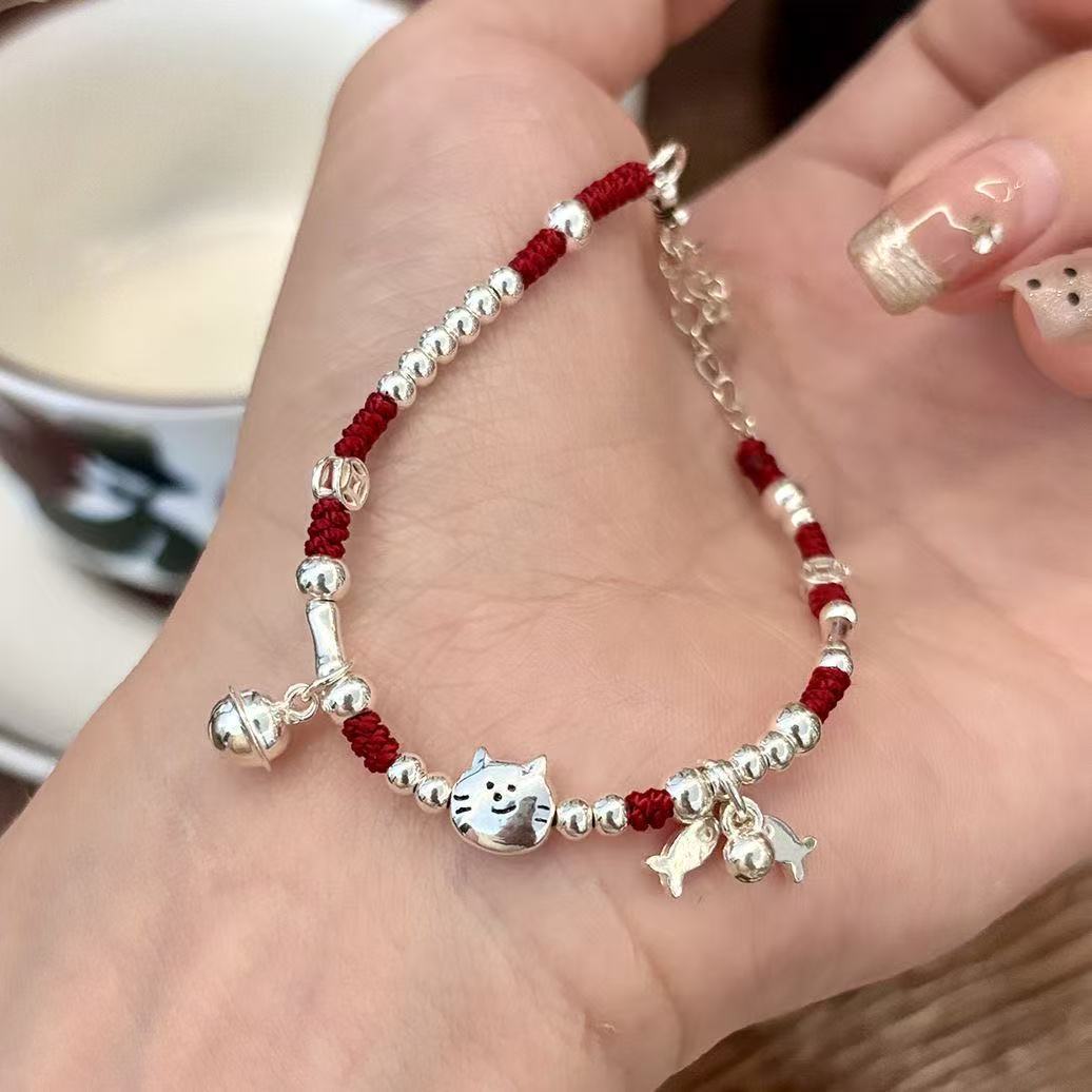 New Girl Heart Cat Fish Red Rope Shore Koi Hand Rope Buming Year Bracelet Handmade Bell Woven Bracelet