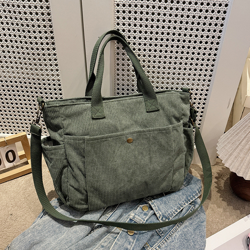 New Women's Corduroy Bag Casual Handbag Shoulder Crossbody Bag Large Capacity Multi-Pocket Women's Tote Bag