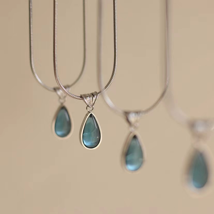 Mermaid Tears ~ elegant niche all-match blue water drop pendant necklace women's fashionable light luxury high-grade clavicle chain