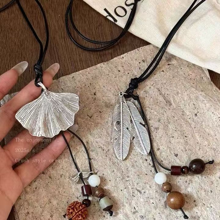 New Chinese Style Ginkgo Feather Tassel Necklace for Women 2025 New Retro Medieval Wear Matchinging Long Necklace