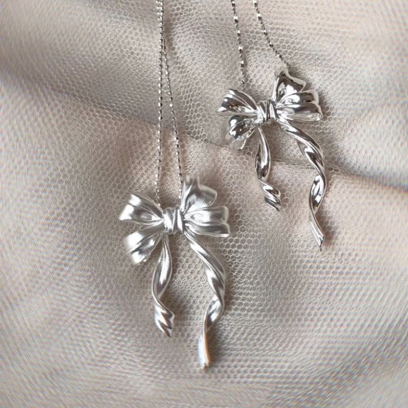 Silver Bow Pull-Out Necklace for Women, Simple Ins Cool Style Long Accessories, Korean Sweatshirt Chain, Clavicle Chain