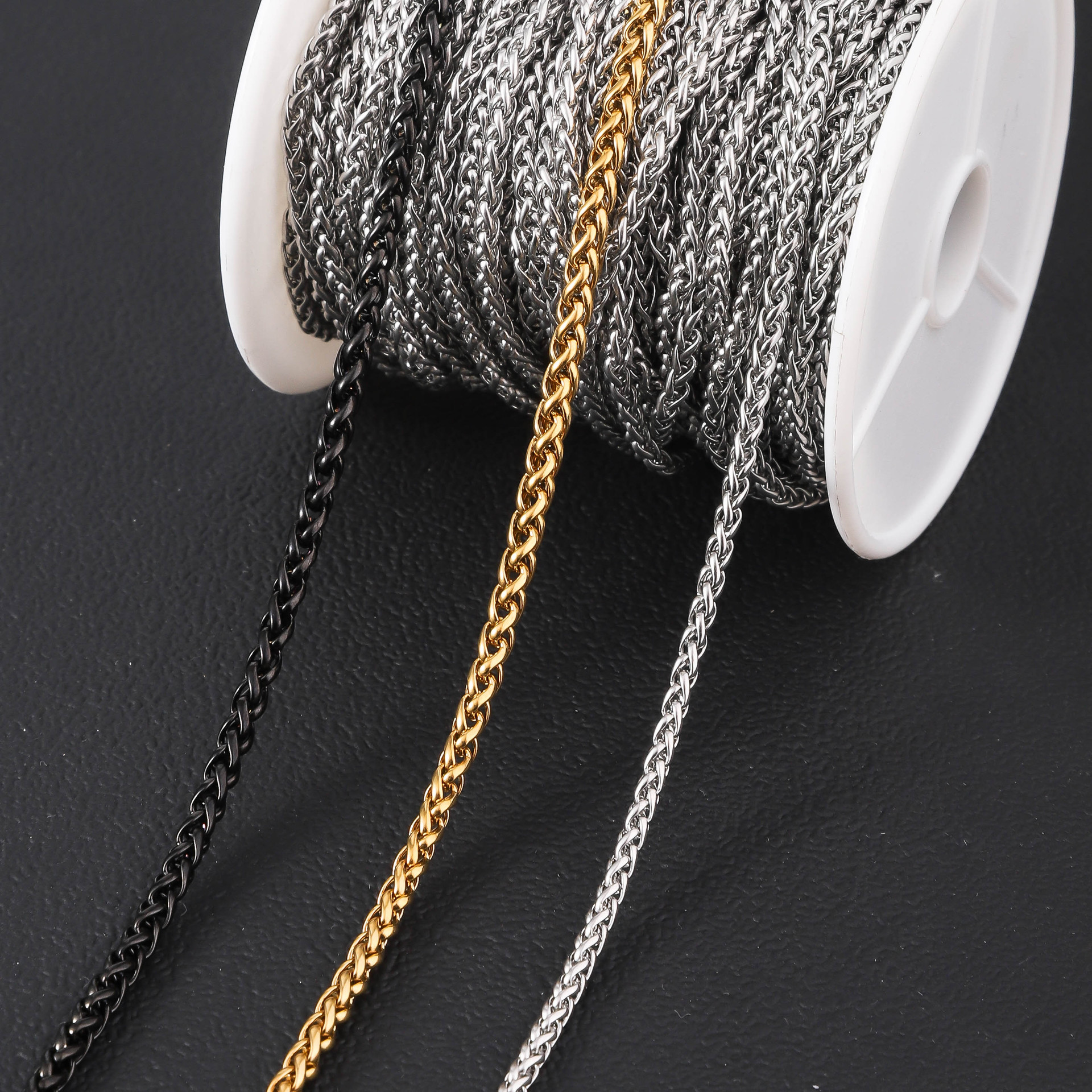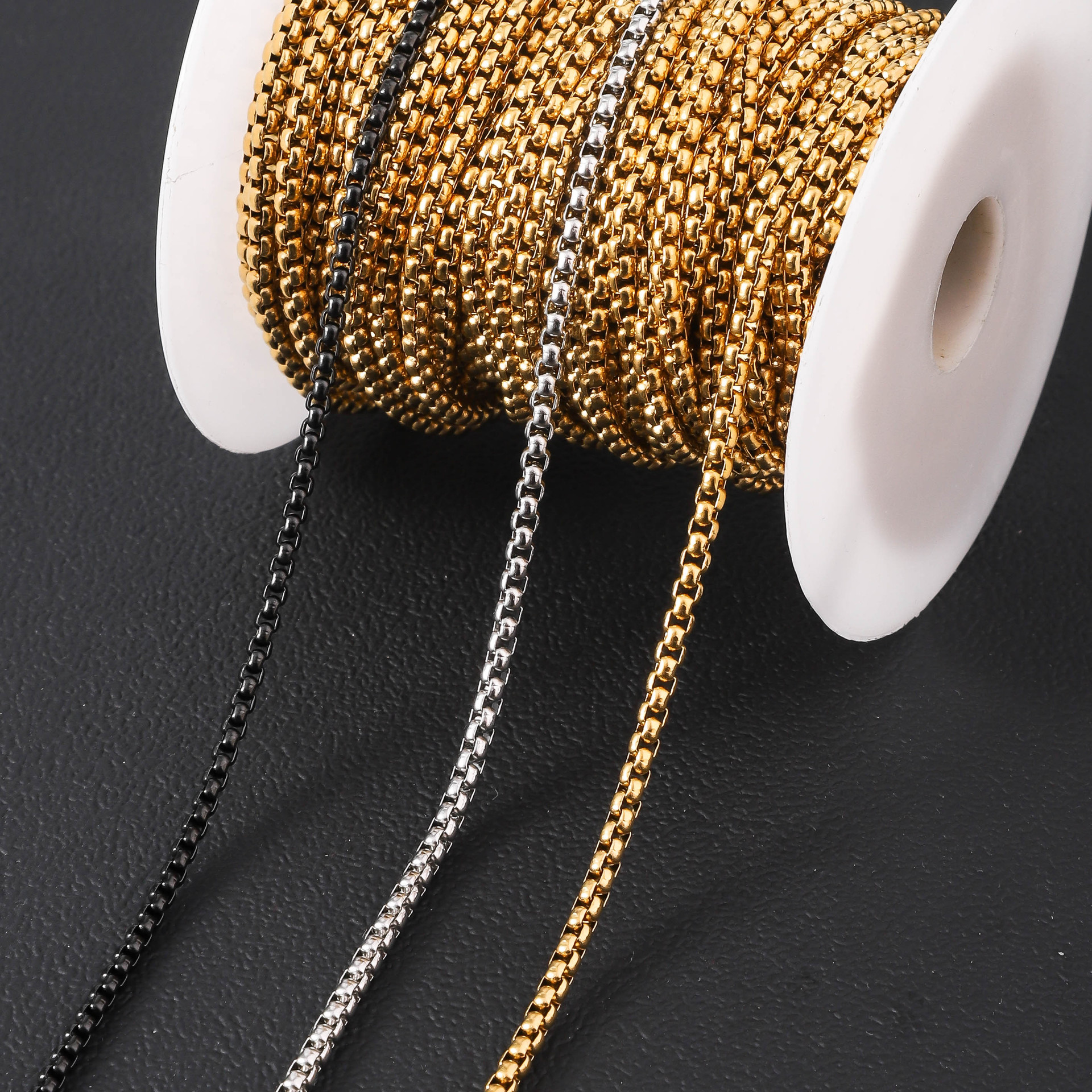 Stainless Steel Gold Square Pearl Chain DIY Chain Jewelry Chain Wholesale Trendyy Men's Corn Chain Titanium Steel Necklace