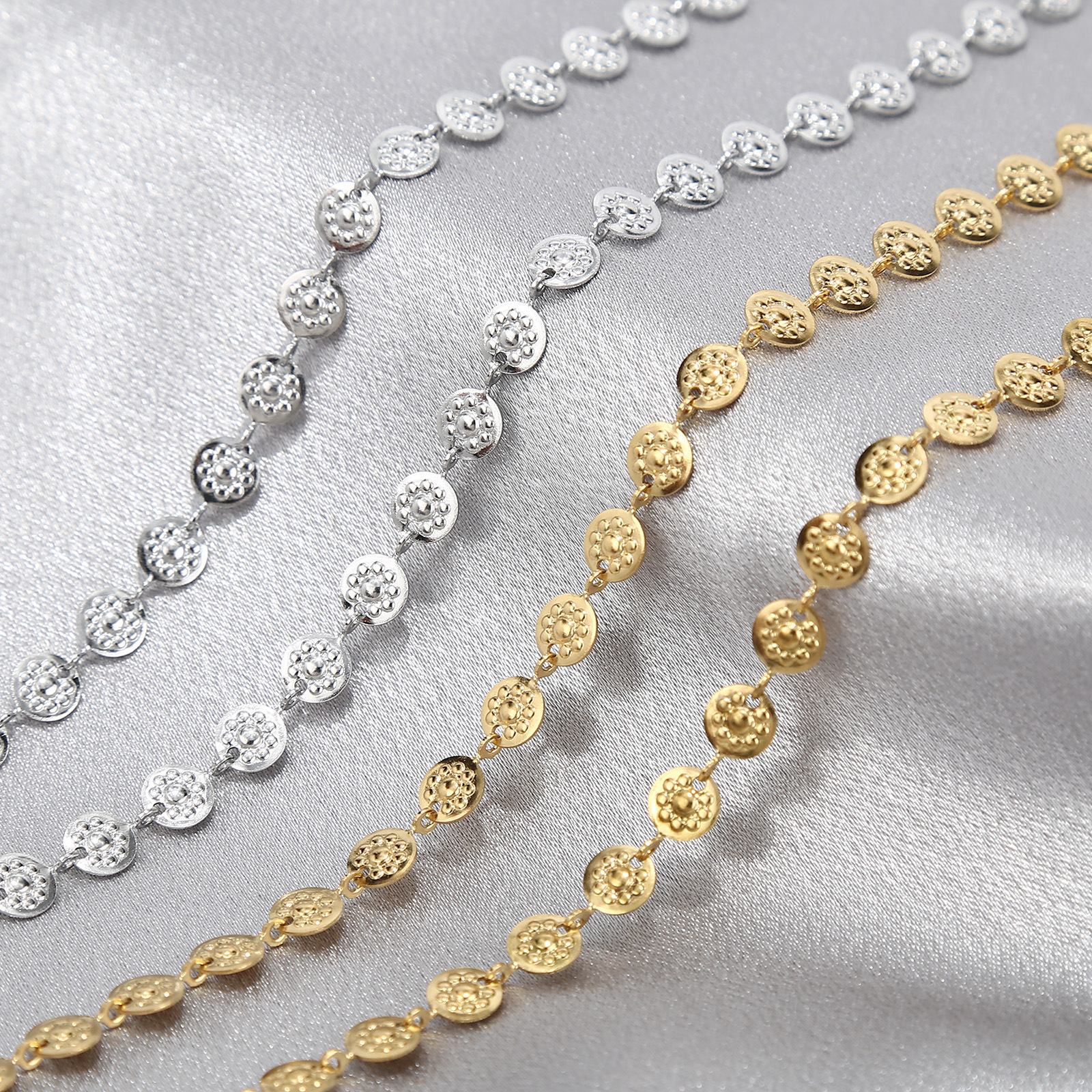 Stainless Steel Vacuum Plated Round Embossed Handmade Chain Men's Bracelet Women's Necklace DIY Jewelry Chain