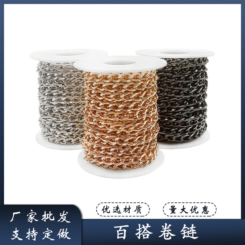 DIY decorative chain high quality aluminum material roll chain belt reel luggage clothing fashion versatile decorative scroll aluminum chain