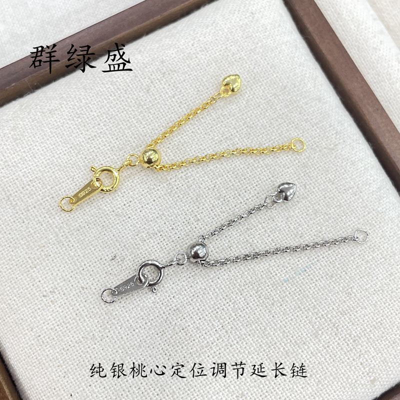 Qunlvsheng S925 sterling silver love extension chain diy necklace bracelet hot selling adjustable Universal chain closing buckle