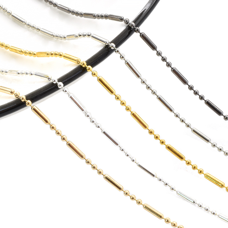 Factory in stock wholesale 304 stainless steel finished chain 18K vacuum plating bead push dense DIY titanium steel necklace