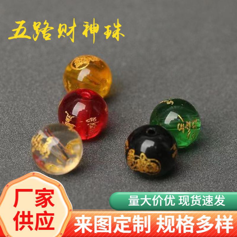Glass Beads with Gold Stamping and Engraving, Five-Way God of Wealth Round Bead Bracelet for Men, DIY Accessories God of Wealth Bracelet