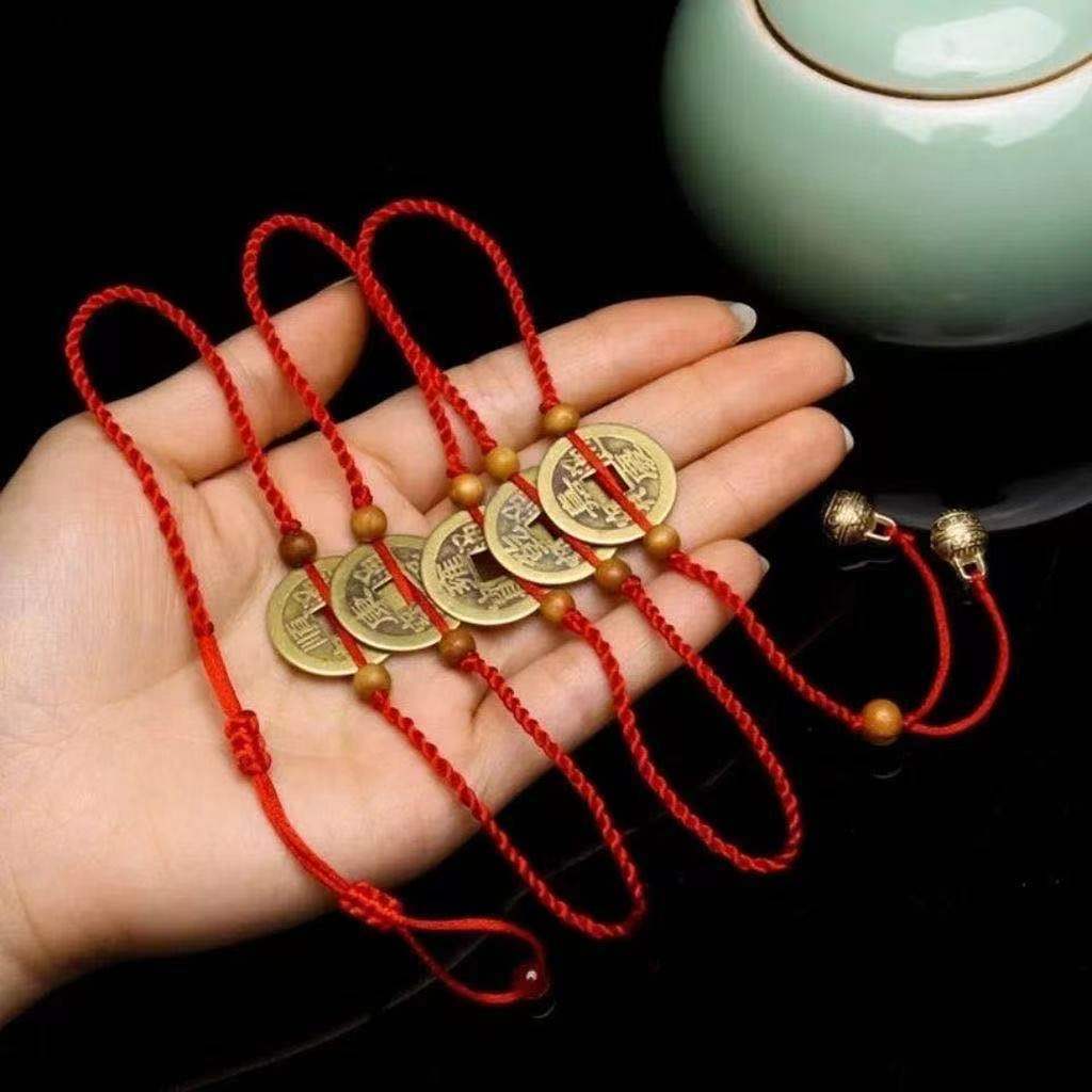 Five Emperor money red rope waist chain this life year copper peach wood woven belt men and women waist chain wholesale