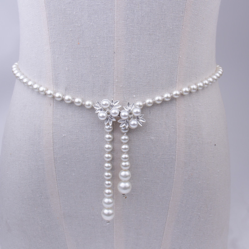 Fashion single row imitation pearl waist chain dress summer belt in stock bow buckle five-pointed star Multi-buckle style