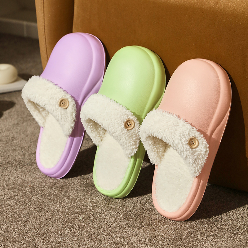 2025 Autumn and Winter Waterproof Cotton Slippers for Women to Wear at Home and Outside, Non-Slip Fleece-Lined Warm Couple Cotton Slippers for Men