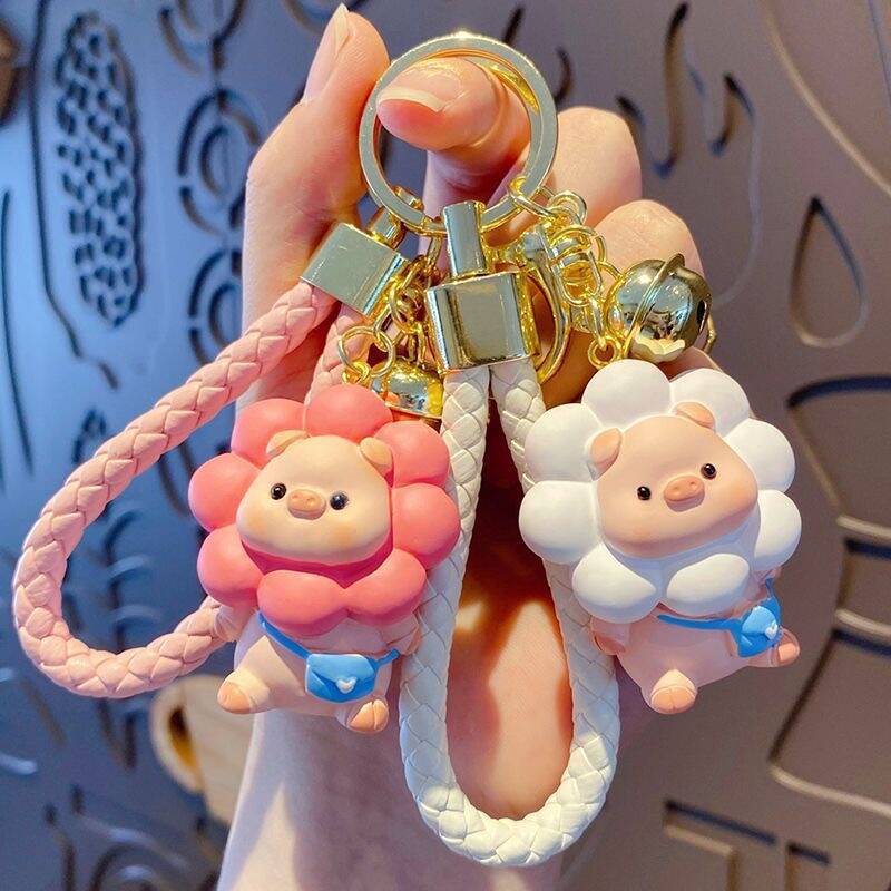Sunflower Pig Keychain Exquisite Female Car Key Pendant Cute Boys and Girls School Bag Pendant Keychain
