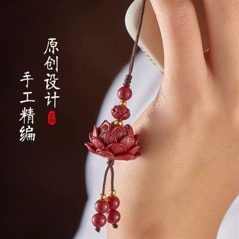 Authentic Cinnabar Double Lotus Car Keychain Pendant for Men and Women Purple Gold Sand Good Luck Mobile Phone Chain Bag Pendant