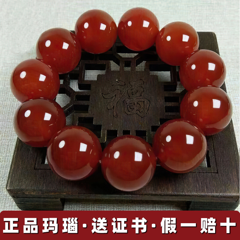 Authentic Certificate Counter Quality Natural Red and Black Agate Chalcedony Crystal Bracelet for Men and Women