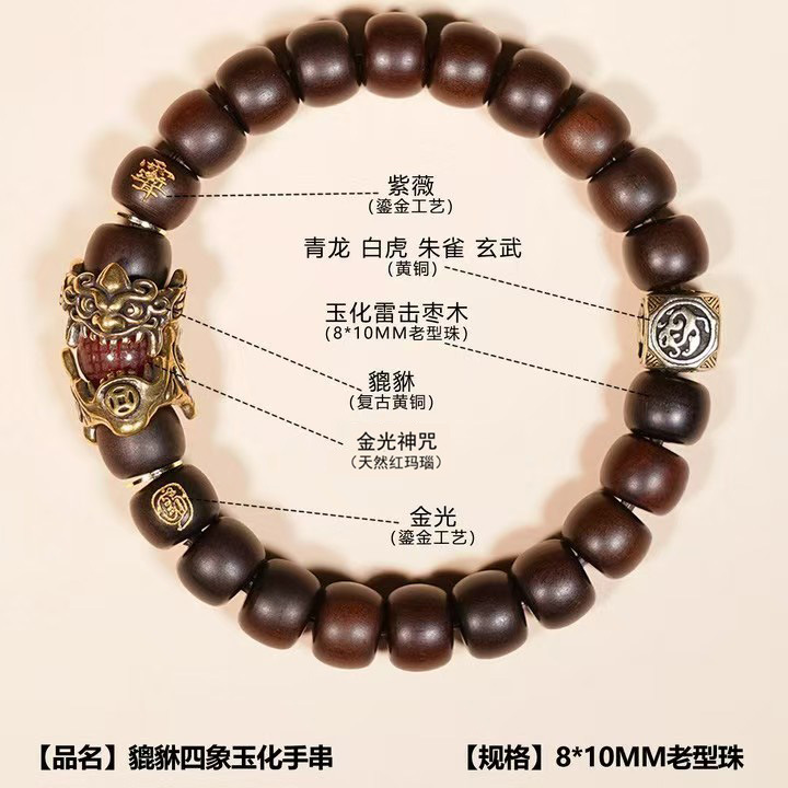 【Pixiu Fortune】 Lightning-Struck Jujube Wood Bracelet Men's and Women's Bracelet for Playing with Lightning-Struck Wood and Peach Wood