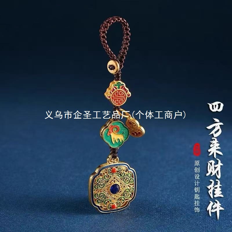 Ancient Gold Twelve Zodiac Car Keychain Pendant for Men, High-End Dragon, Tiger, Monkey, Pig, Square Fortune Key Pendant for Women