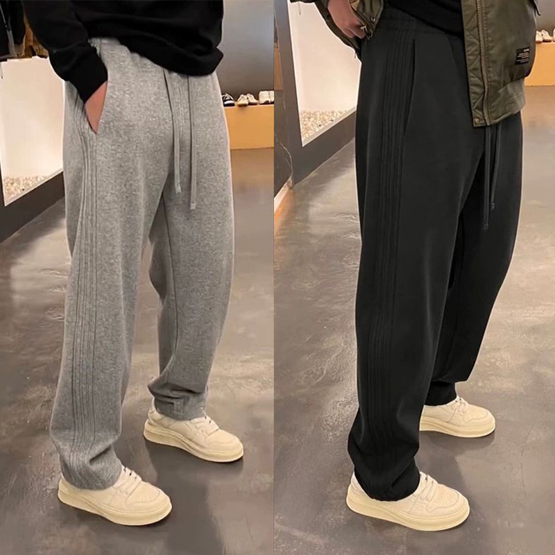 2025 Spring New Men's Thickened Sweatpants Banana Pants Loose Wide Leg Pants Silhouette Scimitar Pants Solid Color Casual Pants