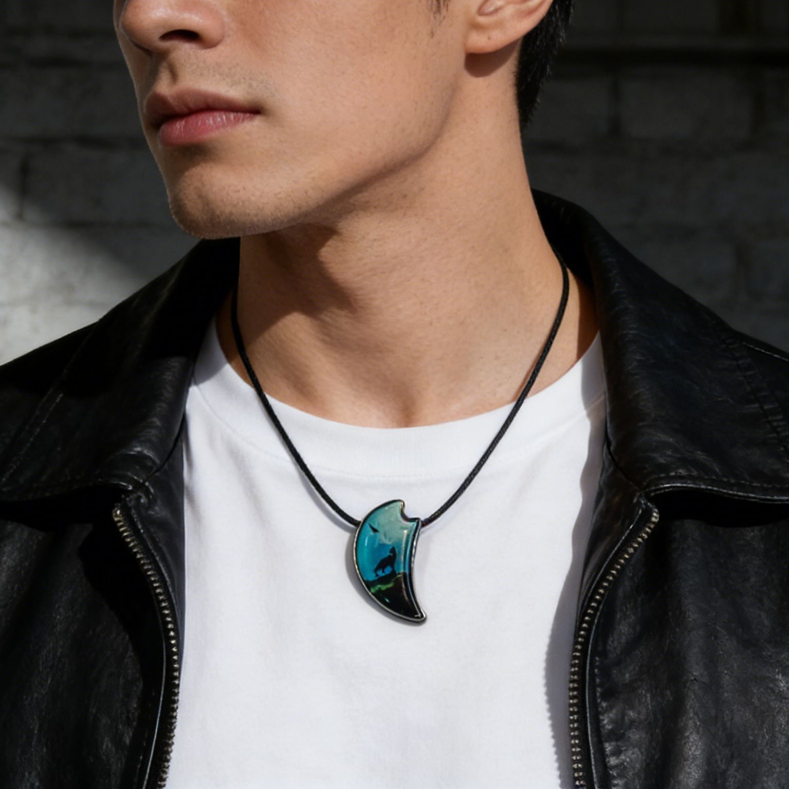 European and American Cross-Border Hot-Selling Fashion Retro Niche Personality Men's Blue Half-Moon Wolf Tooth Pendant Necklace Accessory