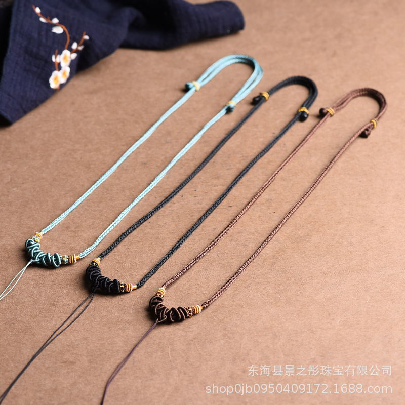 Hand-woven eight-strand necklace pendant rope men's and women's pendant rope jade pendant Crystal beeswax lanyard adjustable