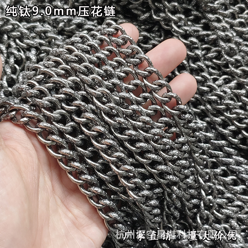Pure Titanium Pattern Embossed Denim Chain Cuban Chain Bag Chain Ultra-Light Non-Rusting Necklace 9.5mm Retro Men's DIY Chain
