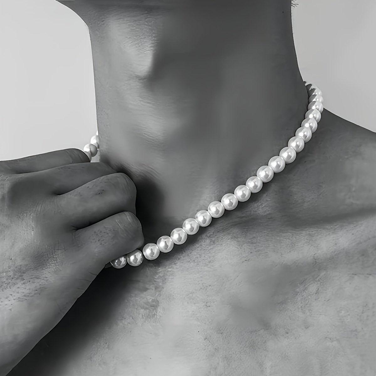 Retro simple fashion single layer men's imitation pearl collar round beaded clavicle chain imitation pearl necklace wholesale