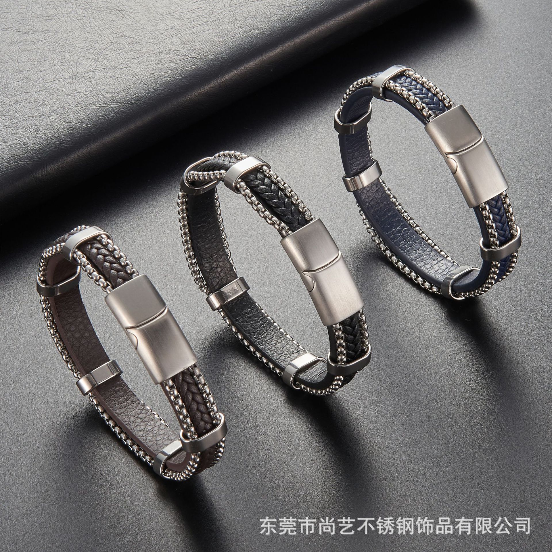 Cross-Border New Stainless Steel Chain Braided Leather Rope Men's Bracelet Niche Light Luxury High-End Bracelet Jewelry Wholesale