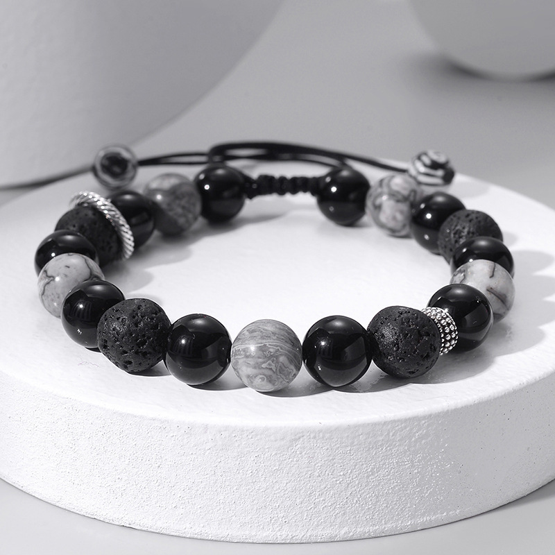 Cross-Border Hot Selling Square Black Gallstone Bracelet for Men Italian Elastic Mix and Match Bracelet Fashion Beaded Accessories Wholesale