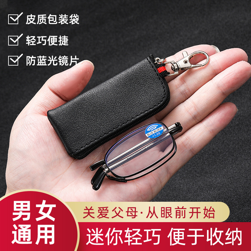 Anji upgraded curved-leg HD anti-blue light reading glasses men's keychain folding portable middle-aged and elderly glasses women