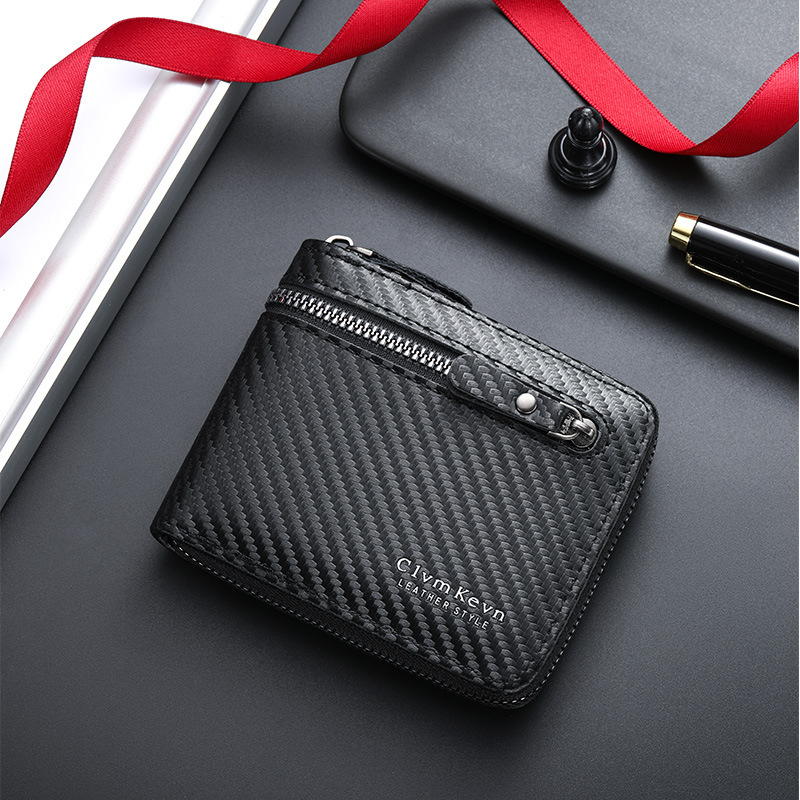 Cross-Border Short Carbon Fiber Men's Wallet Large Capacity Zipper Coin Coin Slot Thin Fashion Money Card Holder
