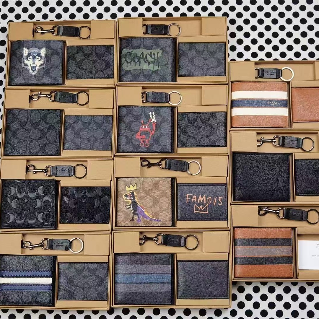 204 New Koujia Classic Men's Short Coin Purse C Pattern Half-Fold Pure Leather Wallet Card Holder Keychain Gift Box