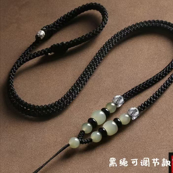 Hetian Jade Pendant Lanyard Pendant Jade Pendant Jade Necklace Rope Jade Sunglasses Mobile Phone Pendant Rope Hand-woven for Men and Women