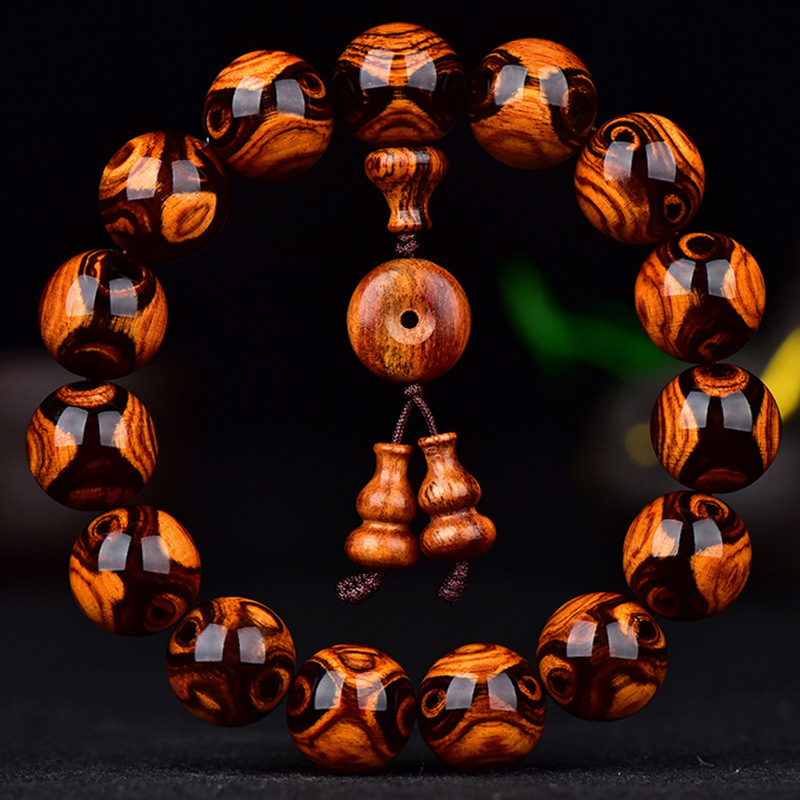 Authentic Hainan Yellow Pear Wooden Bracelet Men's Face to Eyes Old Material Scar Buddha Beads Wen Play Sea Yellow Couple Bracelet