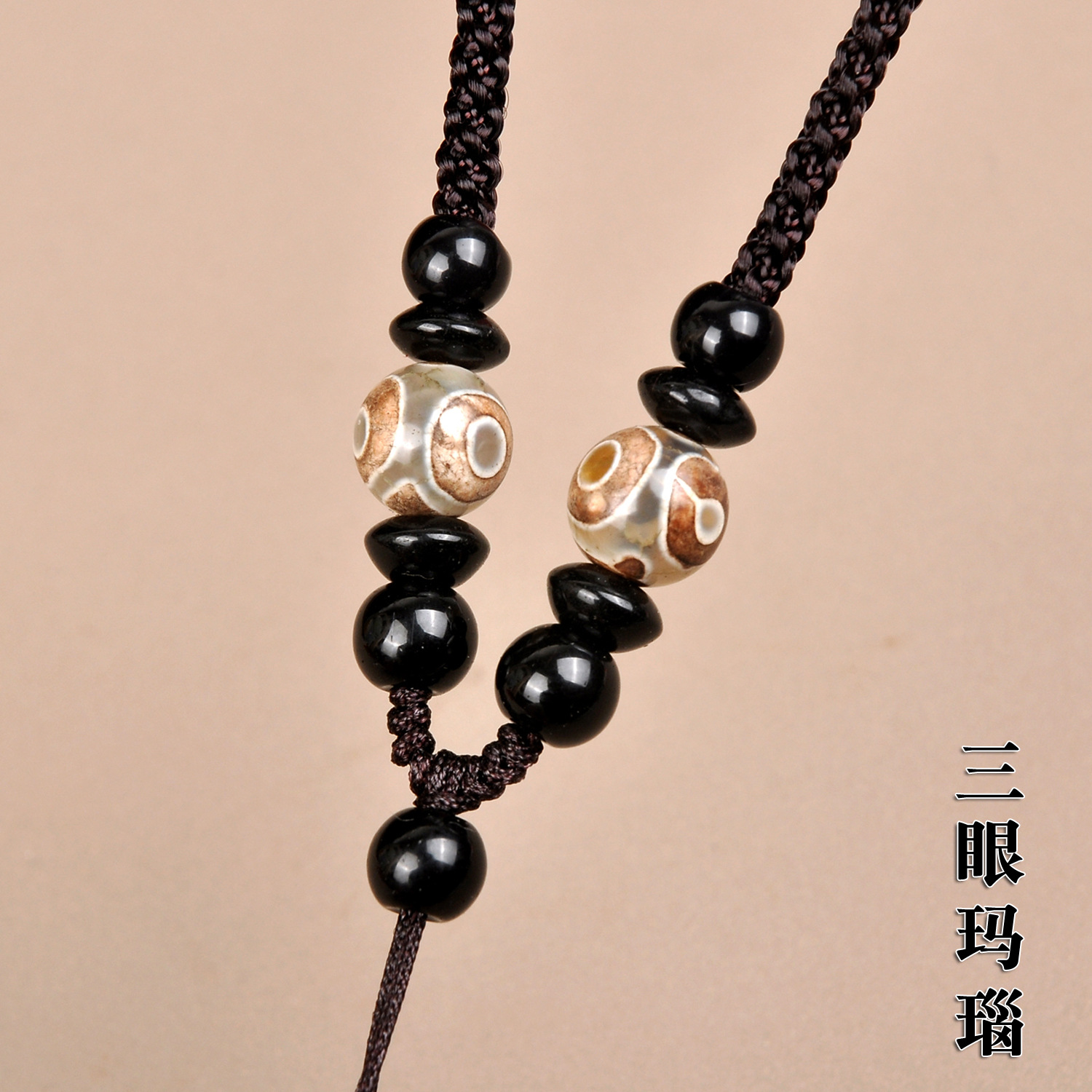 Three-Eye Dzi Agate Necklace Rope Adjustable Men's and Women's Jade Pendant Lanyard Jade Pendant Lanyard Men's and Women's