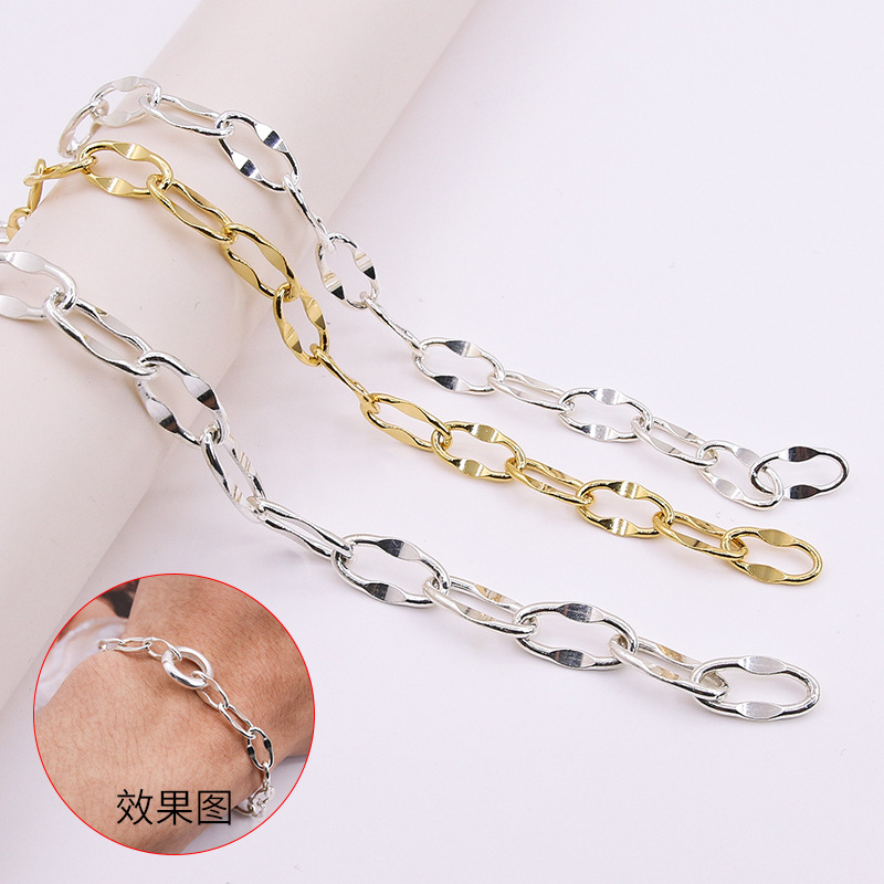 S925 sterling silver men's lip chain calendered round thick chain neutral chain semi-finished loose chain flat characteristic silver chain