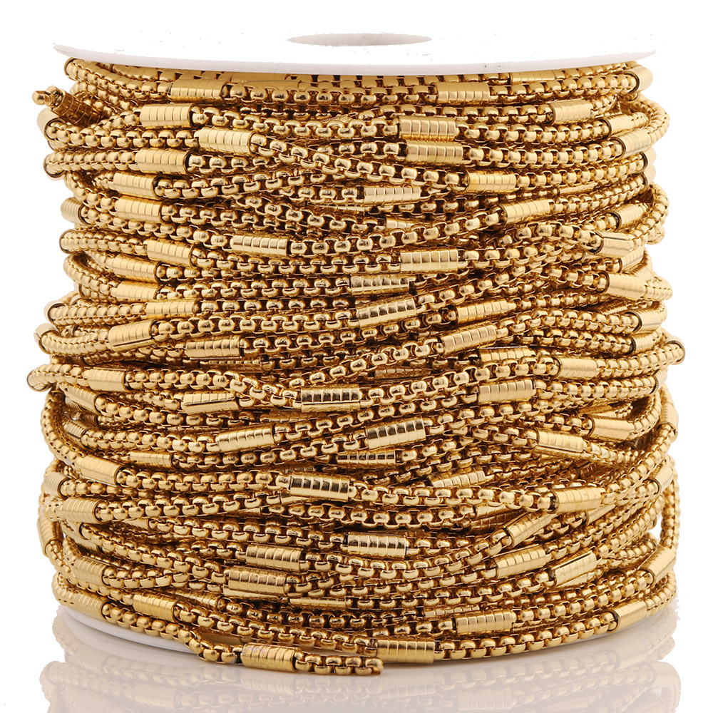 New Stainless Steel Square Pearl Pinch Tube Chain Cross Grain Tube Chain DIY Men's Necklace Bracelet Jewelry Thick Chain in stock