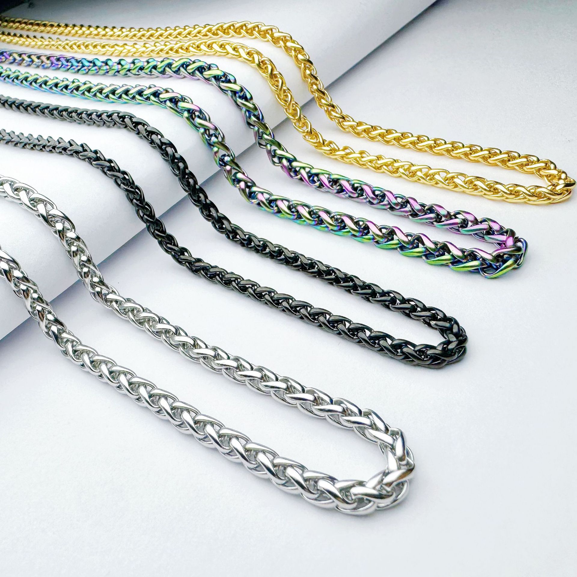 Cross-Border Hot-Selling Stainless Steel 18K Men's Titanium Steel Hip-Hop Six-Sided Grinding DIY Jewelry Chain Non-Fading Cuban Chain