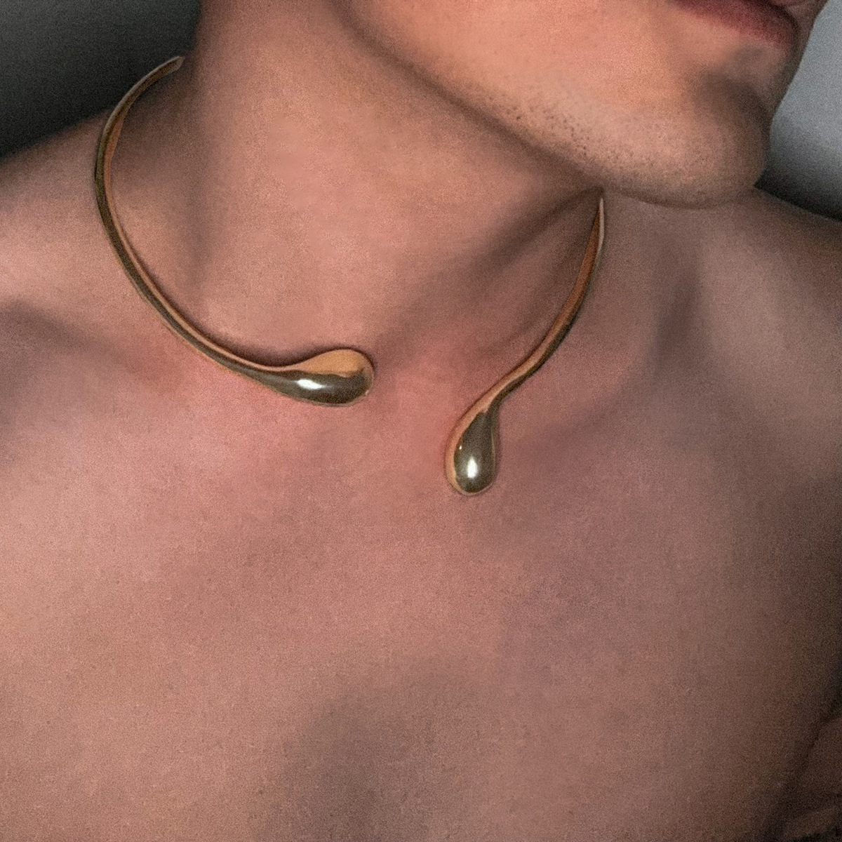 Europe and the United States cross-border metal big water drop open collar men's fashion hip hop niche men's exaggerated necklace clavicle chain jewelry