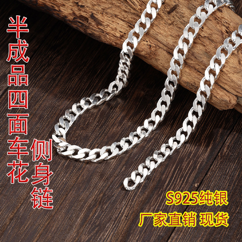 Cuban chain S925 silver car flower four side chain tank chain whip chain necklace men's clavicle chain semi-finished products wholesale