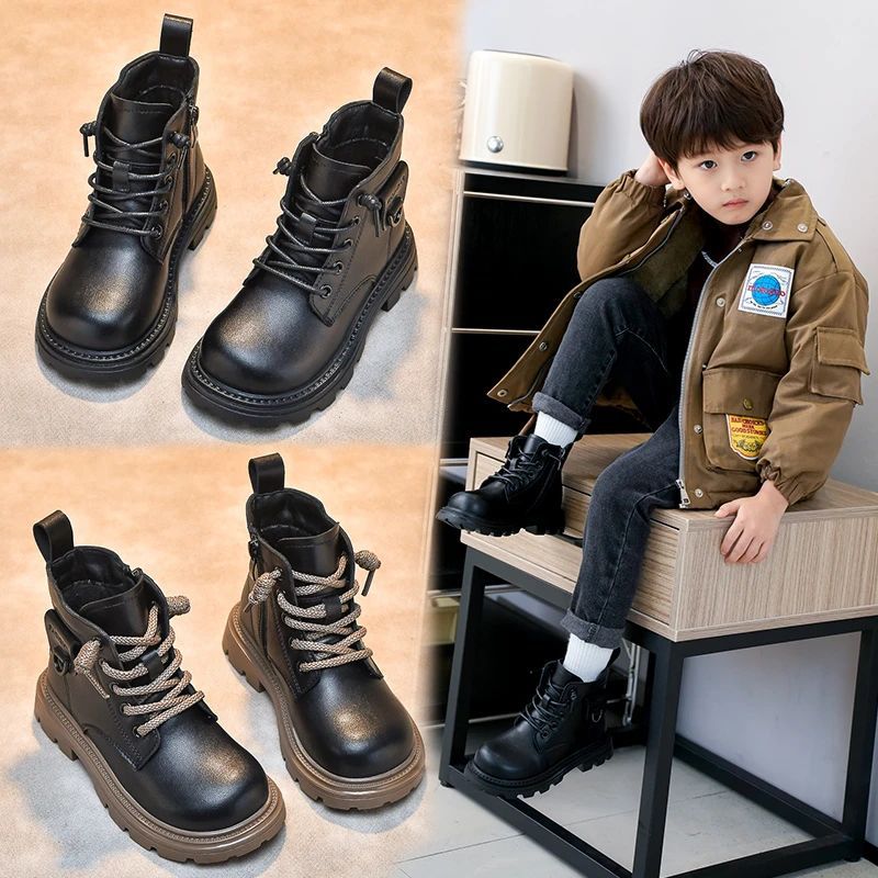 Boys' Boots 2025 Autumn and Winter New Kidsren's Boots Black Boys' Spring & Fall Short Boots Fleece-Lined Kidsren's Boots