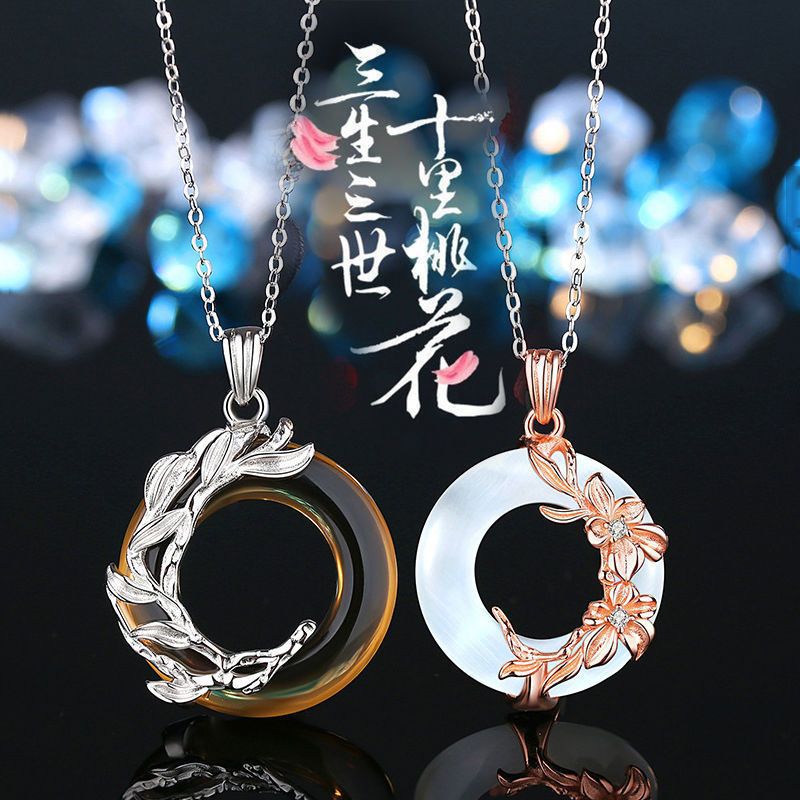 Three Lives Three Worlds Peace Buckle Ancient Style Couple Necklace for Men and Women Valentine's Day Silver Clavicle Chain Trendy Christmas Gift
